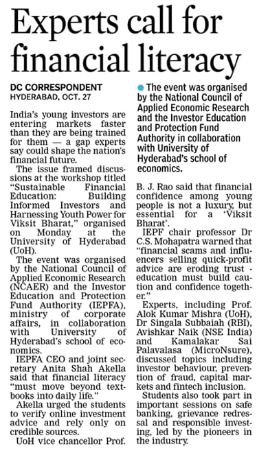 Experts Call for Financial Literacy — MicroNsure Participates in Sustainable Financial Education Workshop Our Founder & CEO, Kamalakar Sai Palavalasa, shared insights on innovative approaches to improving financial inclusion, digital insurance literacy, and the importance of building financial resilience among India’s youth.